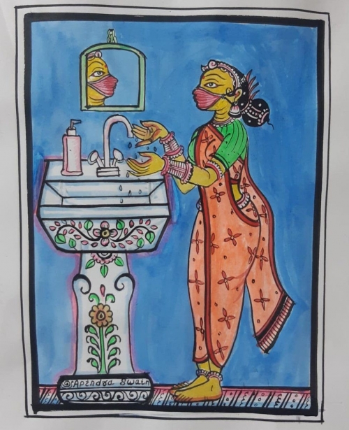 وأوضحت ليلى تيابجى، منذ شهر مارس، أنتج الفنانون أعمالًا فنية تعبر عن أهمية الابتعاد الاجتماعى، وارتداء أقنعة الوجه، وغسل اليدين بالصابون وتجنب السفر الجماعى، وهناك أيضًا مشاهد تصور المستشفيات التى تعالج المرضى ولطالما استخدم الفنانون الشعبيون فى الهند الفن التقليدى للرسائل الاجتماعية.