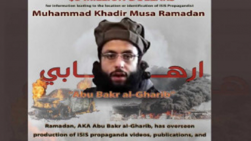 أعلنت وزارة الخارجية الأمريكية، عن مكافأة مالية تصل إلى 3 ملايين دولار، مقابل معلومات تساعد على تحديد مكان المسؤول عن المحتوى الدعائي في تنظيم ”داعش“ محمد موسى رمضان، المعروف باسم أبو بكر الغريب.