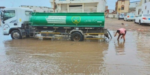 "البرنامج السعودي للتنمية" يسحب مياه الأمطار من العاصمة عدن