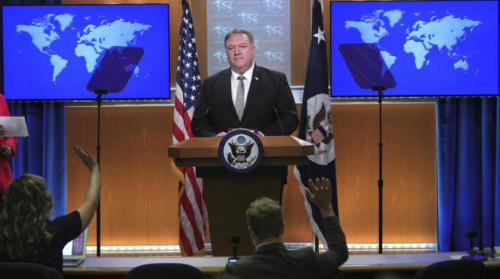وزير الخارجية الأميركي مايك بومبيو يتحدث خلال مؤتمر صحافي بمقر الوزارة في واشنطن (أ.ب)