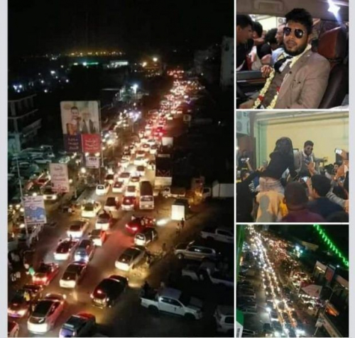 شهدت العاصمة عدن امس اكبر موكب عرس في تاريخها كان العريس فيه شاب كفيف.