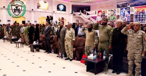 شهد قائد قوات الدعم والإسناد العميد محسن الوالي واركانه العميد نبيل المشوشي صباح اليوم السبت الحفل الخطابي في الذكرى السنوية الأولى لاستشهاد القائد العميد منير محمود اليافعي ابو اليمامة قائد اللواء أول دعم وإسناد ورفاقه في العاصمة عدن.