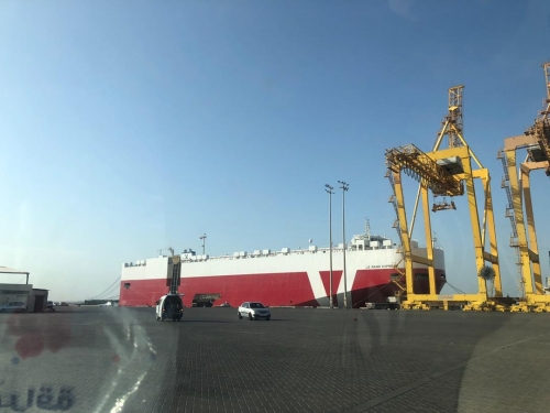 السفينة العملاقة "ليمانس إكسبرس" تفرغ قرابة 4100 سيارة في عدن