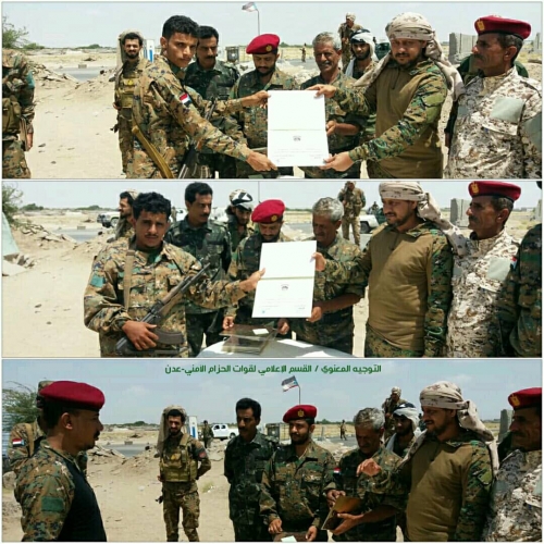 بتوجيهات من قائد الحزام الأمني العميد جلال الربيعي قام أركان حرب قوات الحزام الأمني عمار السرحي وإدارة التوجيه المعنوي بتكريم أحد النقاط الأمنية في قطاع الشعب بالعاصمة عدن.