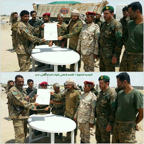 هذا وقد وجه الجنود بدورهم الشكر لقيادة وضباط وإدارات قوات الحزام الأمني في عدن مضيفين انهم سيبذلون كل الجهود المطلوبة لأداء واجبهم الكامل.