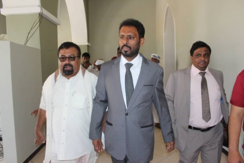 رافقه وكيل المحافظة لشؤون مديريات الساحل والهضبة الدكتور سعيد عثمان العمودي ووكيل المحافظة المساعد لشؤون الصحراء الشيخ محمد بن جربوع الصيعري وعدد آخر من المسؤولين.