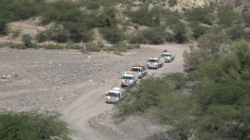 بالصور| قافلة مساعدات إنسانية تصل سكان القری النائية غرب تعز