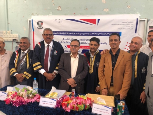 حصل الباحث أ/ فهد ناصر محمد منصور درجة الامتياز بالماجستير في قسم الاعلام بكلية الآداب جامعة عدن اليوم السبت وذلك عن رسالته العلمية الموسومة بـ :(أثر استخدام تقنيات وسائل الاتصال والمعلومات في تحقيق أهداف العلاقات العامة