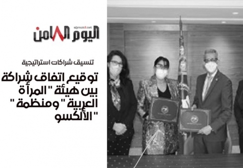 اعلنت هيئة المرأة العربية والمنظمة العربية للتربية والثقافة والعلوم (الألسكو) عن توقيع اتفاقية شراكة وتعاون بينهما في نطاق العمل المؤسسي وتنسيق شراكات استراتيجية من شانها العمل على تأطير برامج ومبادرات تهدف الى تعزيز مساهمة المرأة العربية وابراز دورها المشرق في مجالات الثقافة والتربية والعلوم.