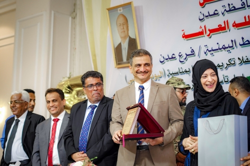 وفي ختام الحفل، قام المحافظ لملس والأستاذة انتصار العراشة وضيوف الحفل، بتكريم موظفي إدارات شركة النفط بعدن، تقديرا لجهودهم المبذولة خلال الفترة الماضية.