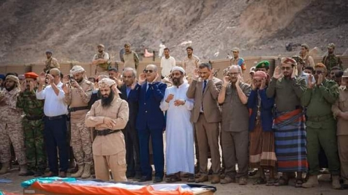 و أدّى المحافظ لملس، بمعية عدد من أعضاء هيئة رئاسة المجلس الانتقالي والجمعية الوطنية والأمانة العامة لهيئة رئاسة المجلس، وقيادات عسكرية وأمنية جنوبية، صلاة الجنازة على جثامين الشهداء، وقدم واجب العزاء لأسرهم وذويهم، سائلاً المولى العلي القدير أن يتغمد الشهداء بواسع برحمته وعفوه، ويسكنهم فسيح جناته، ويلهم أهاليم وذويهم الصبر والسلوان.