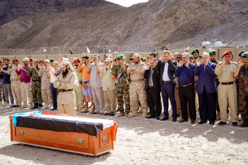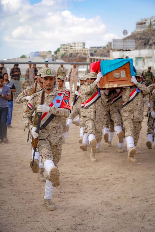 أدّى الأستاذ أحمد حامد لملس الأمين العام لهيئة رئاسة المجلس الانتقالي الجنوبي، محافظ العاصمة عدن، وعدد من أعضاء هيئة الرئاسة وقيادات عسكرية وأمنية جنوبية، اليوم الخميس، صلاة الجنازة على جثمان شهيد الواجب الوطني العميد ناصر محمد الرضامي قائد اللواء 15 صاعقة في جبهة محور أبين.