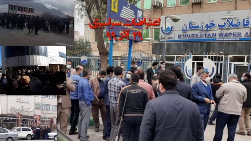 في يوم الأحد الموافق 13 ديسمبر 2020، تجمع عدد كبير من المتقاعدين في 14 مدينة، منها طهران وتبريز وأراك وخرم آباد وإيلام ومشهد وأصفهان وبجنورد ويزد ورشت والأهواز، احتجاجاً على عدم دفع الرواتب والمتأخرات.