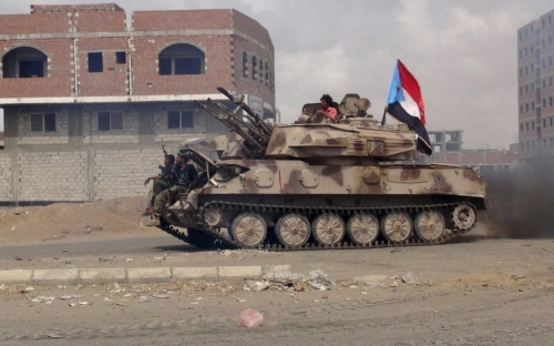 دبابة للقوات الجنوبية خلال دحر الانقلابيين الموالين لإيران من اليمن