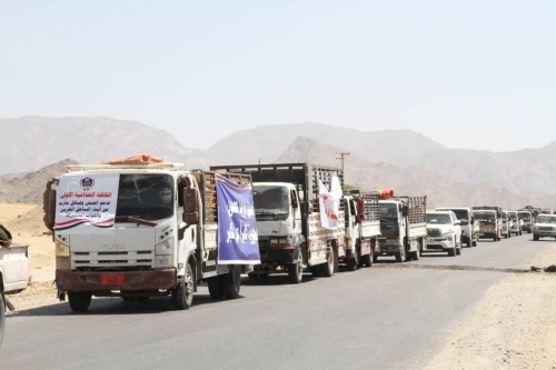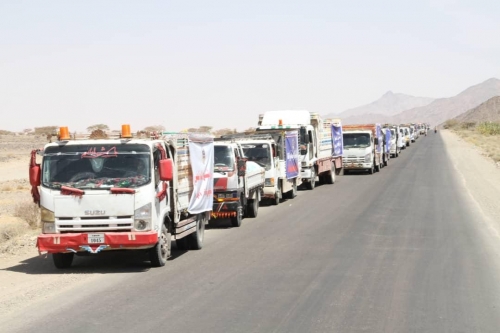 بالصور| قافلة غذائية من "الساحل الغربي" و"المشتركة" تصل مأرب