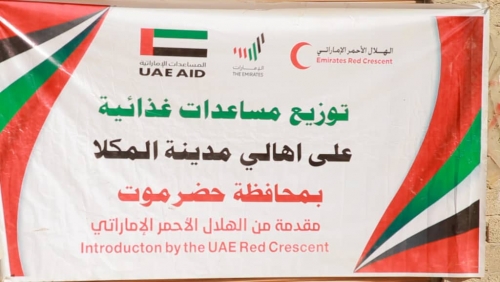 قدمت دولة الإمارات العربية المتحدة - عبر ذراعها الإنسانية هيئة الهلال الأحمر- خلال منتصف فبراير الجاري (1224) سلة غذائية متكاملة، تعادل ( 52 طناً و 387.2 كيلو جراماً ) من المواد الغذائية، استفاد منها (6120) شخص من الأسر المستحقة والغير قادرة في حي شعب البادية و أحفاد البادية بمديرية المكلا بمحافظة حضرموت، وعلى صعيد المساعدات الغذائية أيضاً، وزعت «هيئة الهلال الأحمر» شحنة تمور قدرت بـ (1075) كرتون، على اهالي مدينة المكلا ضمن برنامجها الغذائي.