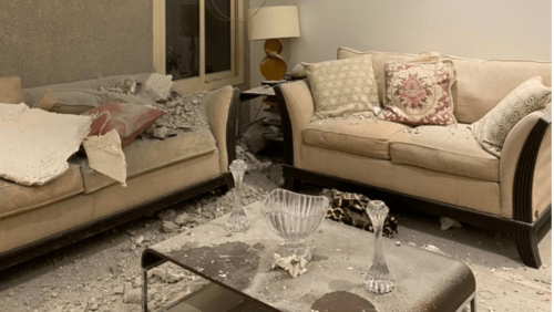 وأظهرت الصورة ضررا بالغا في سقف البيت الذي تداعى من جراء الشظايا، بينما تناثرت أجزاء منه، وسط كومة من الغبار.