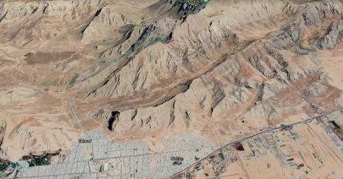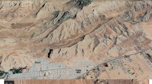 تظهر صور الأقمار الصناعية الجغرافيا العامة لمنشأة إطلاق صواريخ كينشت التابعة لقوات الحرس والمجمع الجديد شمال وشمال شرق مدينة كرمانشاه.