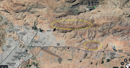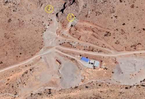 في الخريطة والصورة الجوية، يمكن رؤية موقع هذا المكان وكذلك مدخل الأنفاق أسفل الجبل في شمال الموقع