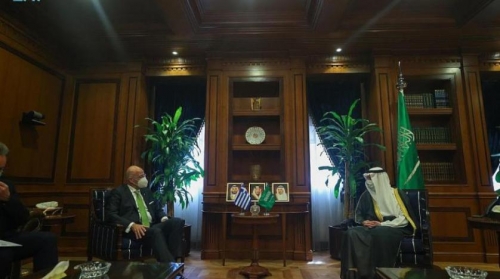 عادل الجبير خلال محادثاته مع وزير الخارجية اليوناني