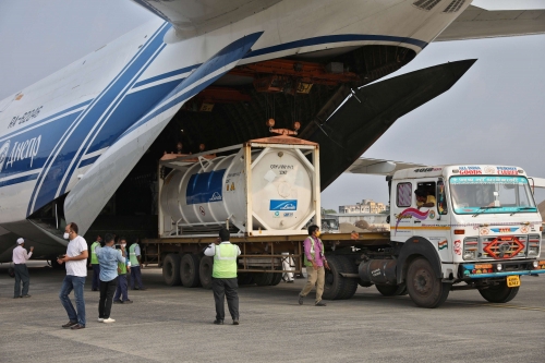 واستقبلت نيودلهي الأحد طائرة شحن فرنسية تحمل 28 طناً من المعدّات الطبية من بينها ثمانية مولّدات أوكسيجين قادر كلّ منها على توفير حاجات مستشفى هندي من 250 سريرا، بحسب السلطات الفرنسية.