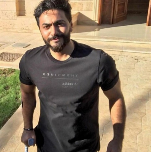 تداول عدد من جمهور المطرب تامر حسني، صورة له عبر "إنستغرام"، ظهر فيها يمسك بعكاز بعد خروجه من المستشفى أمس، بعد اصابته في ظهره.