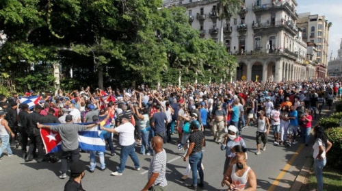 وكانت الاحتجاجات المناهضة للحكومة الكوبيّة، والتي جرى بثّها على نطاق واسع عبر شبكات التواصل الاجتماعي، قد بدأت بشكل عفوي صباح أمس، في حدث نادر للغاية في هذا البلد الذي يحكمه الحزب الشيوعي وحيث التجمّعات الوحيدة المصرّح بها هي بشكل عامّ تلك الخاصّة بالحزب.