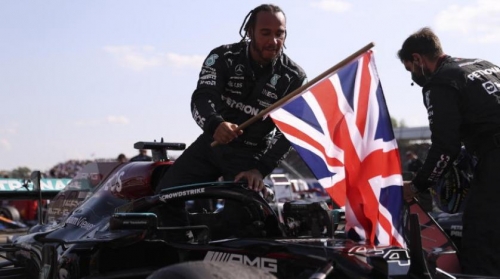 نجا سائق «مرسيدس» البريطاني لويس هاميلتون من حادث مع منافسه المباشر سائق «ريد بول» الهولندي ماكس فيرستابن في اللفة الأولى وتخطى عقوبة 10 ثوانٍ وتجاوز على الحلبة سائق «فيراري» شارل لوكلير من موناكو، ليحرز فوزاً مستحقاً على أرضه في حلبة سيلفرستون أمام جماهير غفيرة بلغت 140 ألفاً صفقت لبطلها طويلاً في الجولة العاشرة من بطولة العالم للفورمولا واحد، اليوم الأحد.