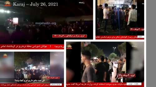 في اليوم الثاني عشر للانتفاضة جرت مساء الاثنين 25 آب / أغسطس، مظاهرات حاشدة في فرديس بكرج، تحت شعار "الموت للديكتاتور" دعما لانتفاضة أهل خوزستان. وصرخ أحد المتظاهرين الذي رفع لافتة مؤيدة لانتفاضة أهل خوزستان: "خوزستان بها الكثير من المنشآت والنفط والغاز، أين ينفق كل هذا؟" وهتف الحشد جوابا له: في "لبنان وغزة".
