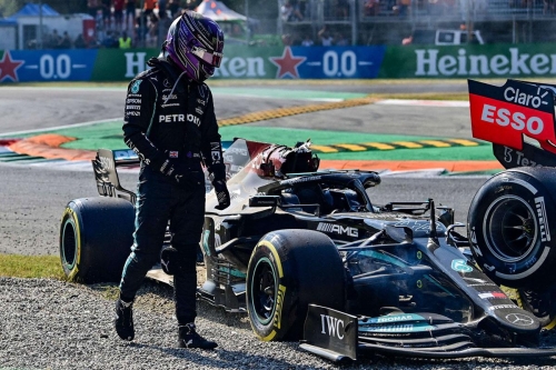 وعجز سائق مرسيدس عن التتويج في آخر أربعة سباقات، فحلّ ثانيا في المجر وهولندا وثالثاً في بلجيكا قبل أن يخرج مع غريمه في ريد بول فيرستابن من سباق إيطاليا اثر حادث اصطدام "استعراضي" كاد يهدّد حياته.