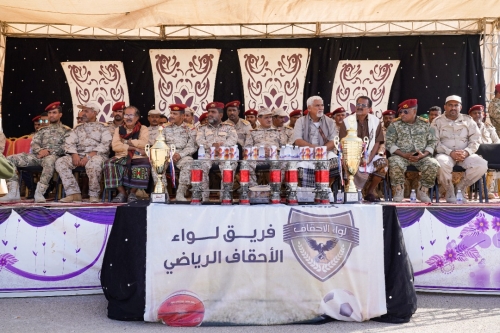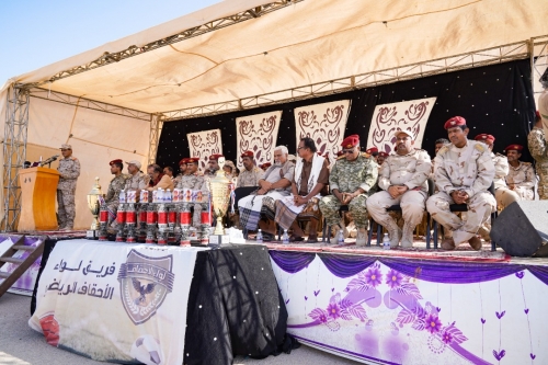 خلال حفل خطابي وتكريمي احتفاءً بتتويج لواء الأحقاف في بطولتي كرة القدم والطائرة