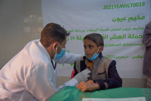 العون المباشر تدشن مخيماً مجانياً لسحب المياه البيضاء في المحويت باليمن