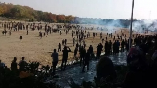تجمهر أهالي أصفهان على ارضية قاع نهر زاينده رود الجافة والهجمات الوحشية لحرس مكافحة الشغب