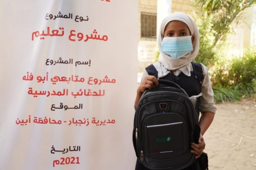 فيما قال منسق المشروع بمكتب العون المباشر في اليمن محمد الحمدي، أن الحقيبة المدرسية مع مستلزماتها تستهدف (2000) تلميذ وتلميذة في (4) مدارس بمدينة زنجبار في محافظة أبين.