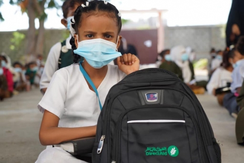 العون المباشر توزع (2000) حقيبة مدرسية في اليمن