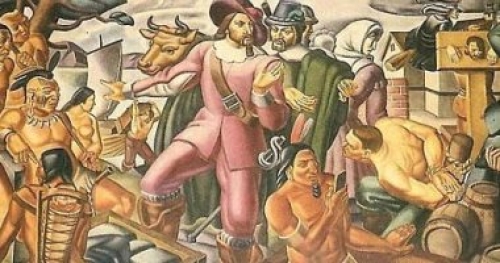 وتدور اللوحة حول هجرة الأمريكيين الأصليين فى القرن السابع عشر الميلادى، وتبين من خلالها أن هناك رجلا أمريكيا يحدق فى هاتف ذكى، بحسب ما ذكر موقع "الديلى ميل البريطانى".