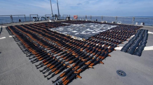 وقالت البحرية إنّ سفنها عثرت على الأسلحة «أثناء عملية تفتيش أجراها أفراد من خفر السواحل الأميركي، وتم نقل الأسلحة والذخيرة غير المشروعة في وقت لاحق إلى مدمّرة أميركية حيث يُنتظر التخلص منها نهائياً».