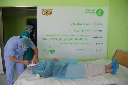 دشنت العون المباشر مكتب اليمن، مخيم نور العون الطبي المجاني لسحب المياه البيضاء وزراعة العدسات في محافظة إب والذي يستهدف إجراء (250) عملية بتمويل العون المباشر حملة العشر الأواخرـ ليلة 29 رمضان.
