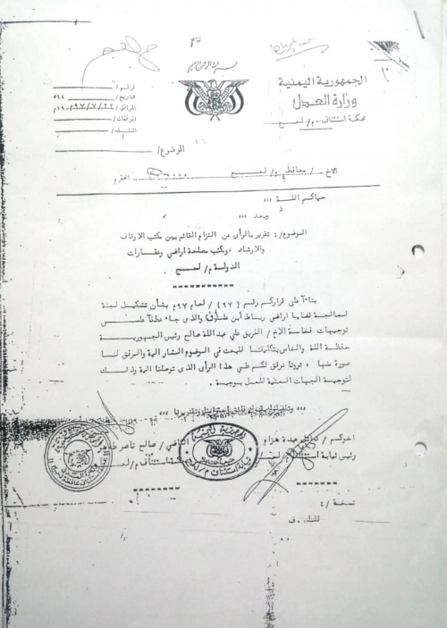 ظلت الوثيقة 17 سنة في صنعاء وبصفتي محامية تابعت المتنفذ كون الأرض الذي أخذها هي جزء من الأرض التي بعناها إلى أن استرديتها في عام 2012م من محكمة استئناف عدن ولدي حكم قضائي بهذا.