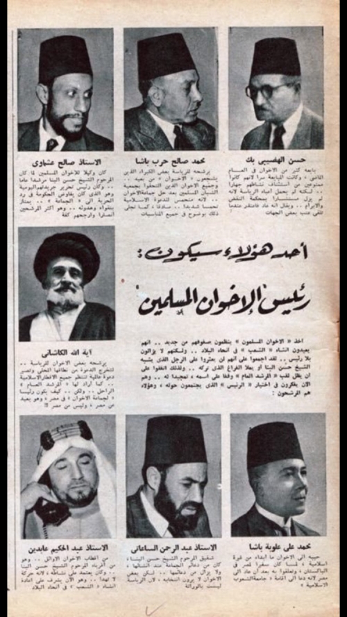 -وقبل ذلك، وتحديدًا بعد مقتل حسن البنا= قرر الإخوان المسلمون ترشيح رئيس للجماعة بدلاً عنه؛ لاعادة ترتيب صفوف الجماعة، وكان أحد الأسماء المقترحة لقيادة التنظيم المعمم الإيراني- آية الله الكاشاني-.