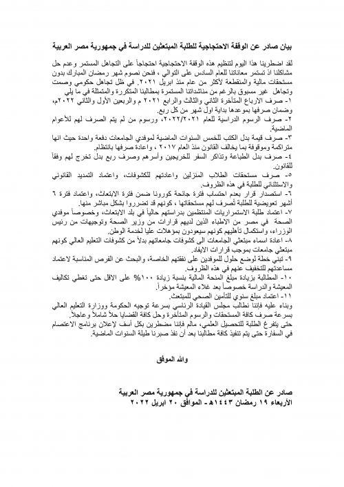 صادر عن الطلبة المبتعثين للدراسة في جمهورية مصر العربية