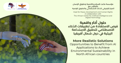 يصادف يوم 5 يونيو من كل عام اليوم العالمي للبيئة والذي يشكل مناسبة للتفكير في التقدم المحرز لتعزيز التنوع البيولوجي وتوفير المياه والهواء النقي بالإضافة إلي مكافحة وطأة التغيرات المناخية الناتج عن الاحتباس الحراري لما لها من تأثيرات سلبية وعواقب وخيمة تهدد من حقوق الإنسان الأساسية، وعلى هذا النحو تستغل مؤسسة ماعت للسلام والتنمية وحقوق الإنسان بالتعاون مع المركز الأفريقي للذكاء الاصطناعي والحقوق الرقمية هذه الفرصة لإلقاء الضوء على فرص استغلال تطبيقات الذكاء الاصطناعي لتحقيق الاستدامة البيئية في دول شمال أفريقيا، وذلك من خلال إصدار دراسة تناقش واقع المشكلات البيئية في شمال أفريقيا، وتعرض الدراسة كذلك الجهود التي استخدمت الذكاء الاصطناعي لتعزيز استدامة البيئة في العديد من المناطق حول العالم وعملت على الاستفادة منها لتغيير الواقع البيئي الحالي في دول شمال أفريقيا.