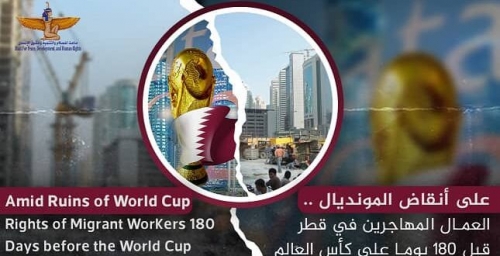 أصدرت مؤسسة ماعت للسلام والتنمية وحقوق الإنسان، تقرير جديد بعنوان " على أنقاض المونديال.. حقوق العمال المهاجرين قبل 180 يوم على كأس العالم" والذي يسلط الضوء على الانتهاكات التي ترتكب بحق العمال الأجانب في دولة قطر، حيث أشار التقرير إلى أنه منذ أن وقع الاختيار على دولة قطر لاستضافة هذا الحدث الهام، توفي حوالي 6,750 من العمال المهاجرين نتيجة ظروف العمل اللاإنسانية، فعادة ما يعملون تحت أشعة الشمس الحارقة.