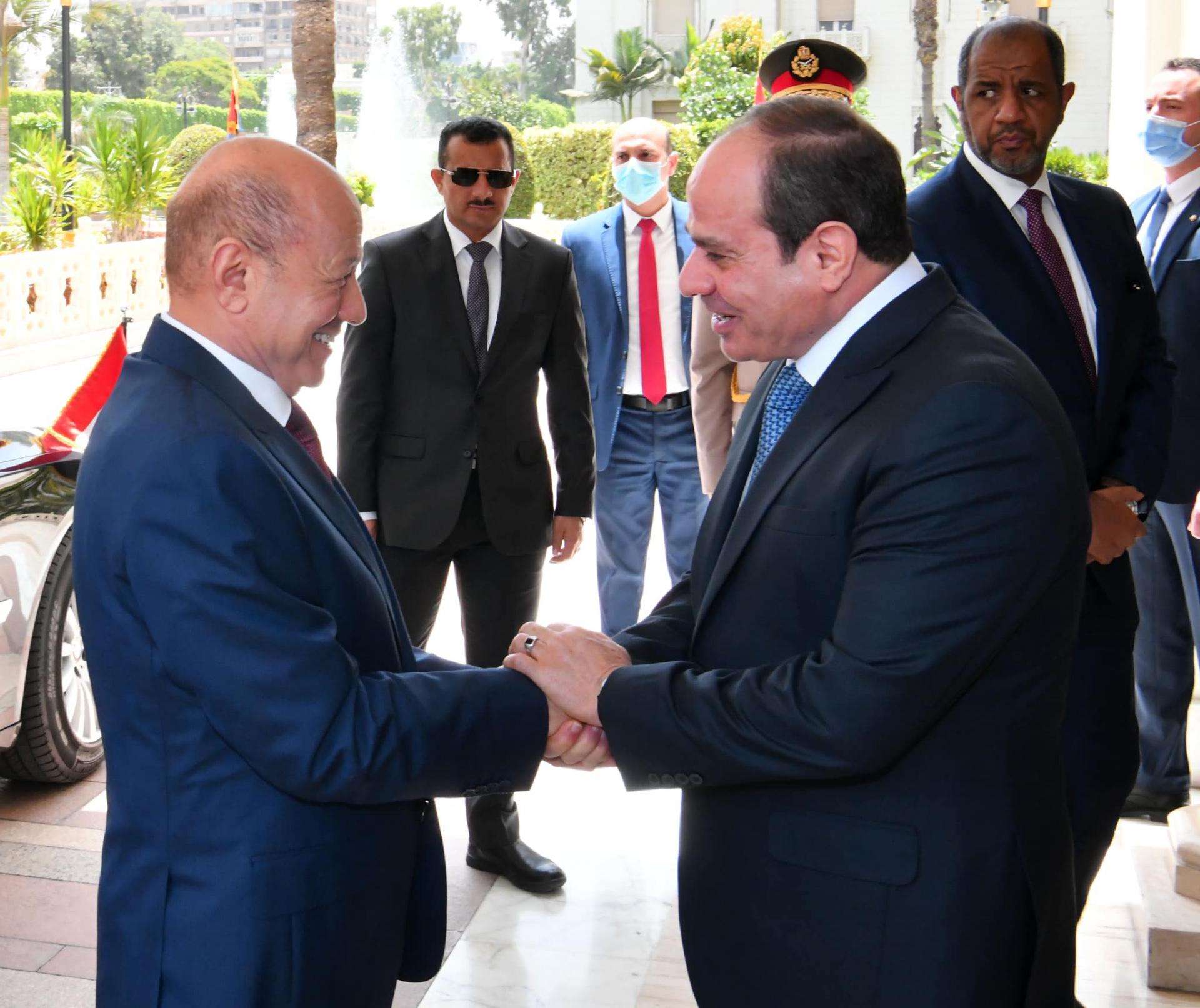 الرئيس المصري يؤكد دعم بلاده لكافة جهود تحقيق السلام في اليمن ويرحب بالتمديد الأممي للهدنة وذلك خلال لقائه برئيس مجلس القيادة الرئاسي اليمني.