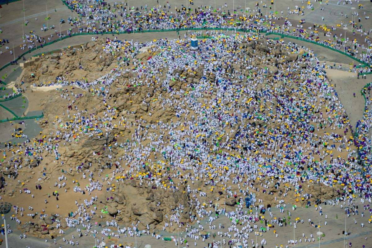 الحجاج يقفون على جبل الرحمة بمشعر عرفات (تصوير: محمد المانع)