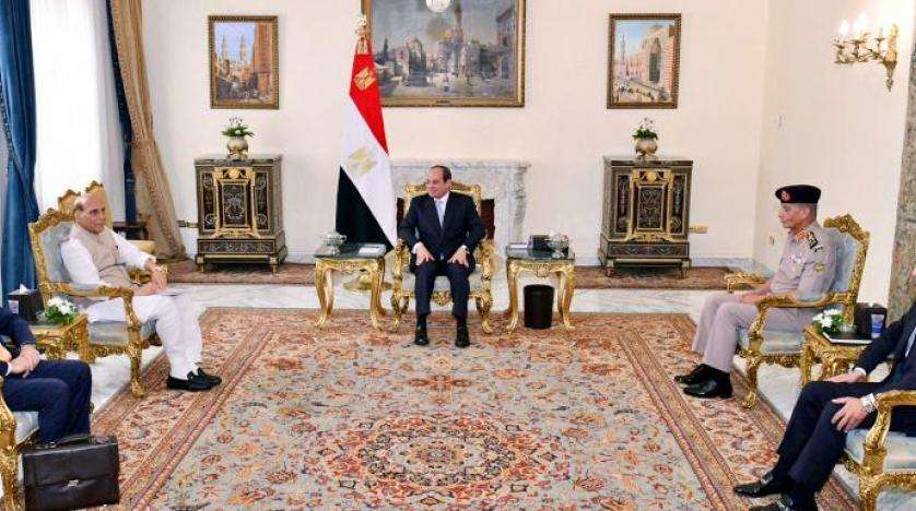 وقال السفير بسام راضي، المتحدث باسم رئاسة الجمهورية، في بيان صحافي عقب اللقاء، إن المباحثات بين الرئيس المصري ووزير الدفاع الهندي «تناولت سبل تعزيز التعاون العسكري والأمني بين البلدين، خاصة ما يتعلق بالتعاون في التصنيع المشترك ونقل وتوطين التكنولوجيا، بهدف استغلال الإمكانات والبنية التحتية المتاحة لدى البلدين، فضلاً عن التعاون في مجال التدريب والتأهيل والتدريبات المشتركة، وتبادل الخبرات والمعلومات».