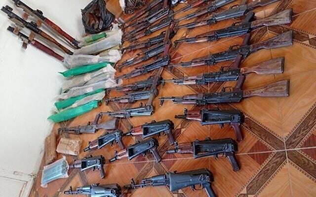 وأظهرت الصور عددا من البنادق الهجومية وقاذفات آر بي جي والذخيرة.