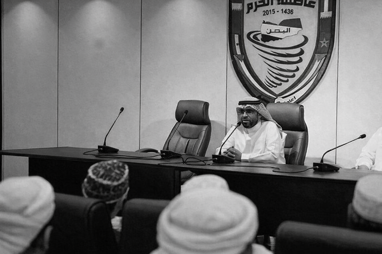 الحاكم العسكري السعودي في جنوب اليمن اللواء المتقاعد فلاح الشهراني متحدثا إلى رجال دين يمنيين في عدن يوم الاربعاء - إعلام سعودي