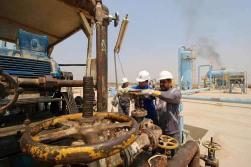 صورة ارشيفية - عامل يضبط صماما في حقل للنفط في البصرة